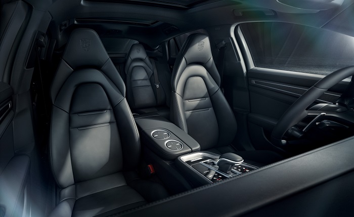 Роскошные элементы интерьера продолжаются: спортивное рулевое колесо GT и усилитель рулевого управления, система помощи при смене полосы движения, двери с мягким закрыванием и системой Comfort Entry, комфортные передние сиденья с электроприводом в 14 направлениях и пакетом памяти, задние сиденья с подогревом, система BOSE® Surround. Аудиосистема, пакет отделки салона из матового алюминия черного цвета и герб Porsche на подголовниках. Элементы, которые являются эксклюзивными для этой специальной серии, также можно найти внутри: накладки на пороги изготовлены из матового алюминия черного цвета и украшены логотипом Platinum Edition. Кроме того, все модели Platinum Edition в стандартной комплектации оснащены аналоговыми часами на приборной панели.